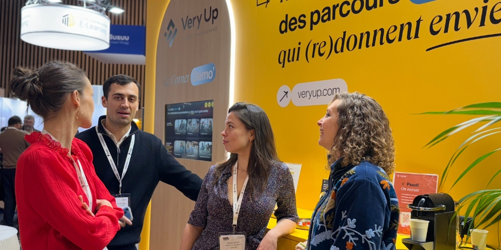 Les solutions se multiplient, notamment autour de l’entraînement, de la simulation et du coaching par IA. Chez Very Up, nous avions beaucoup de projets concrets à montrer, que ce soit dans la formation des forces de vente ou dans le management en passant par la formation outil ! » – Lucie Lantz2. Apprendre en faisant devient enfin scalable