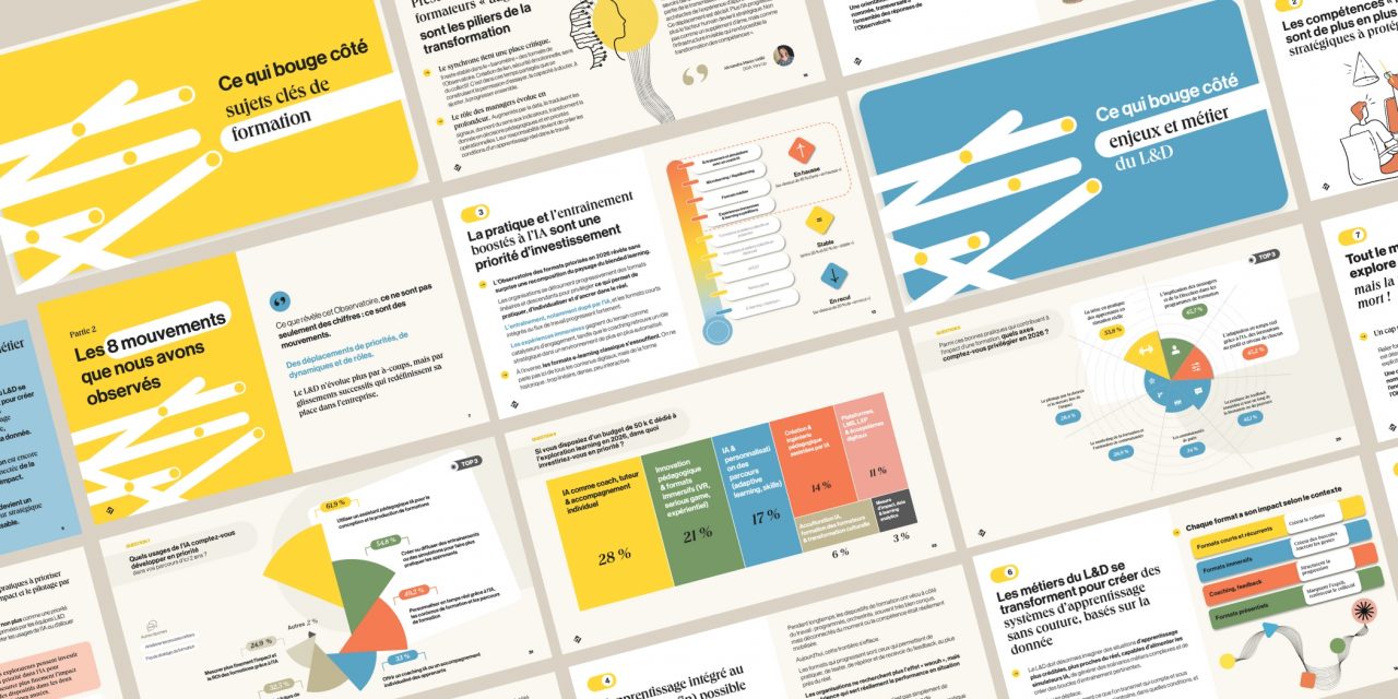 Spécialistes de la formation sur-mesure hybride et de l’innovation pédagogique, nous aidons les organisations à transformer leurs pratiques et à créer des parcours qui ont un impact réel. Avec cet observatoire, nous poursuivons notre mission : donner de la visibilité aux enjeux qui transforment la formation et inspirer la communauté L&D.