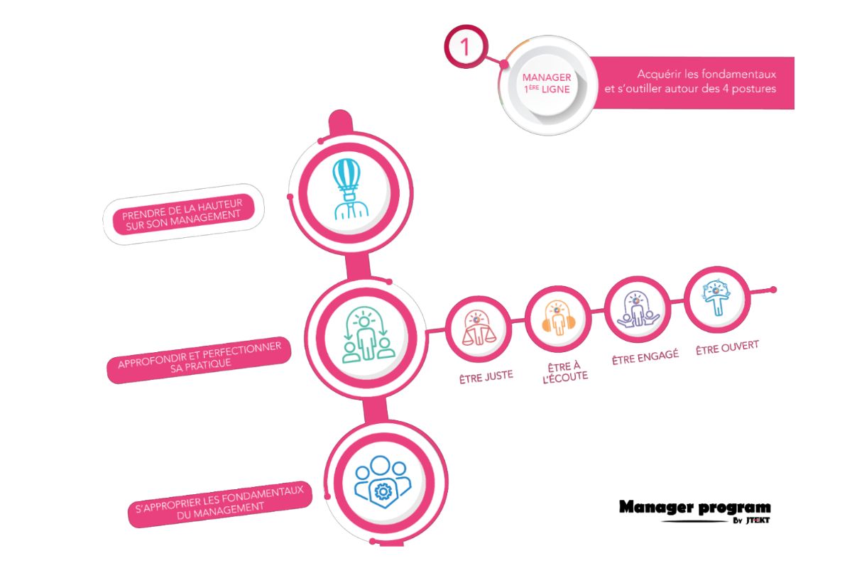 - Le parcours Manager 1ère ligne s’adresse aux managers de proximité. Il leur permet d’acquérir les fondamentaux du rôle, de s’approprier les quatre postures clés et de développer leurs premiers réflexes managériaux.